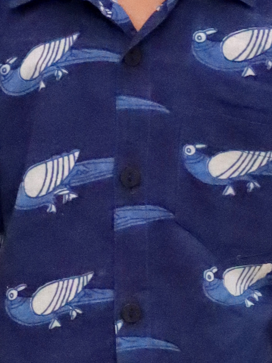 Boys' Cotton Flex Shirt & Shorts Co-ord Set – Blue Printed - 1-2 years